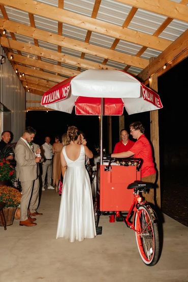 Tricycle cart Italian ice catering is available for your special occasions.